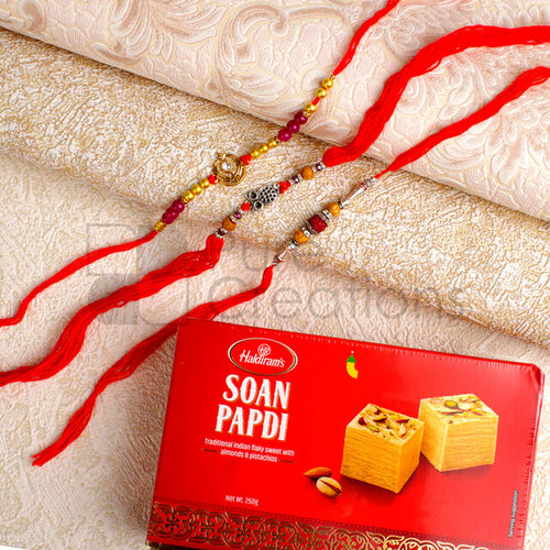 Royal Rajasthani Rakhi Set with Soan Papdi - For Canada